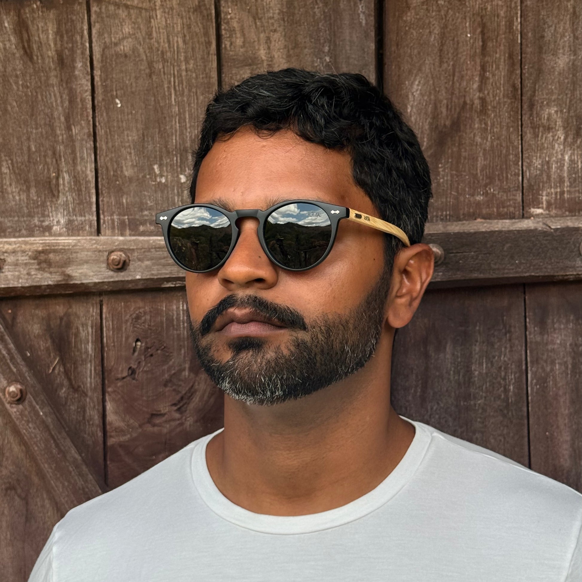 O Óculos de Sol Beagá Preto tem a armação em acetato preto fosco, e os cambitos (ou pernocas) em bambu natural. Clássico, versátil e cheio de presença — combina com qualquer trem.